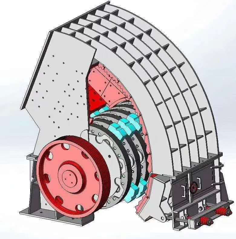 2.2科学合理的活动反击架设计,可灵活调节出料粒度大小,控制成品料中石粉含量,独特的反击腔及反击板牙型,充分保证破碎后物料的粒型,是混凝土搅拌站及国家大型基础设施建设首选机型。